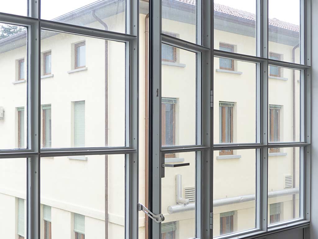 As part of the requalification of this historic industrial plant in Valdagno near Vicenza, Capoferri’s new Ferrofinestra system found one of its first applications. This new line of products has been studied specifically for applications in historical contexts, combining the aesthetics of the last century with modern standards in terms of performance and functionality. Ferrofinestra Capoferri evokes the look of traditional steel windows crafted by artisans during the 19th and the first half of the 20th century. While traditional in appearance, these windows come with many modern features like, e.g. multipoint locking hardware. The thermal break has been fully integrated into the window profile in order to reduce the dimensions of the frames, including those for the operable parts, while guaranteeing structural integrity and providing excellent performance values when it comes to acoustic and thermal insulation as well as resistance to air, water and wind. The result is an unpretentious window, which is functional and guarantees a high standard of security – perfect for the requalification of an old factory.