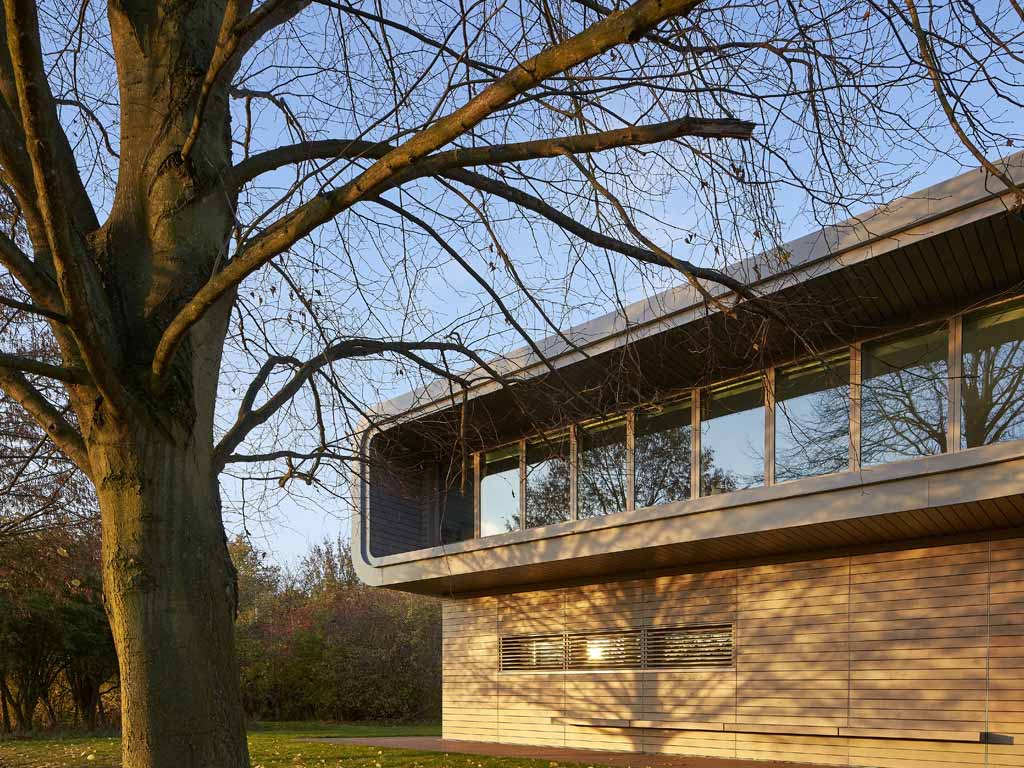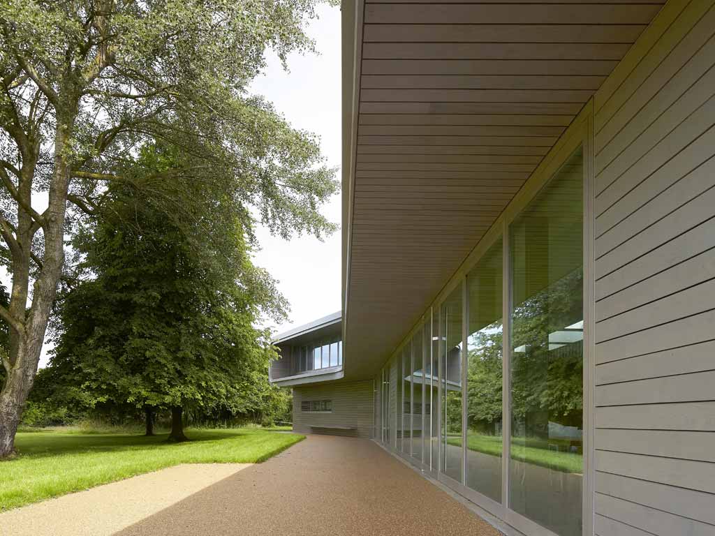 La “Henry Moore Foundation” a Perry Green nel Hertfordshire custodisce i lavori dello scultore Henry Moore (1898 – 1986), importante artista inglese conosciuto per le sue sculture semi-astratte in bronzo. L’intervento comprende la riqualificazione di una casa esistente, la Dane Tree House, posizionata non distante da dove l’artista ha vissuto gli ultimi anni della propria vita, oltre ad un nuovo volume costruito per accogliere i visitatori e dotare la Fondazione di nuovi spazi e funzioni. La Dane Tree House è stata convertita in modo da garantire una ambiente adeguato dal punto di vista funzionale, tecnico, ambientale e di sicurezza per poter ospitare gli archivi delle opere, un negozio oltre agli uffici della Fondazione. L’estensione è dedicata invece all’esperienza di visita e ospitalità, comprendendo – oltre all’esposizione di schizzi, disegni ed opere dell’artista – anche la reception, il punto vendita per i biglietti d’ingresso e una caffetteria. Capoferri ha realizzato su disegno tutti i serramenti per entrambi gli edifici, scegliendo di utilizzare il rovere verniciato per l’effetto di grande armonia con i colori del paesaggio circostante. I serramenti comprendono grandi luci fissi e porte-finestre pivotanti di notevole dimensioni.